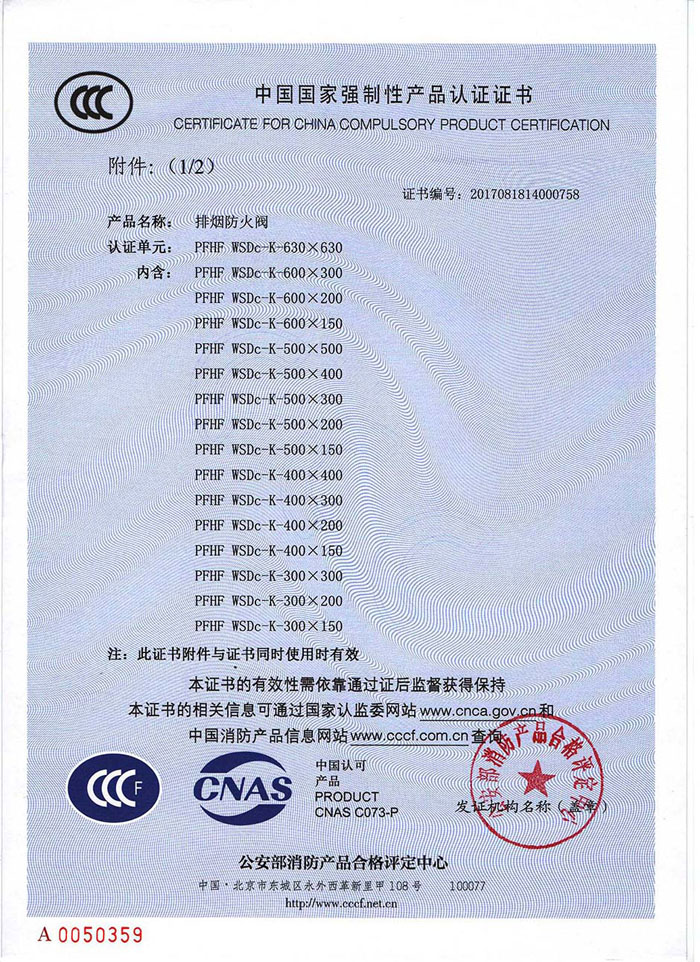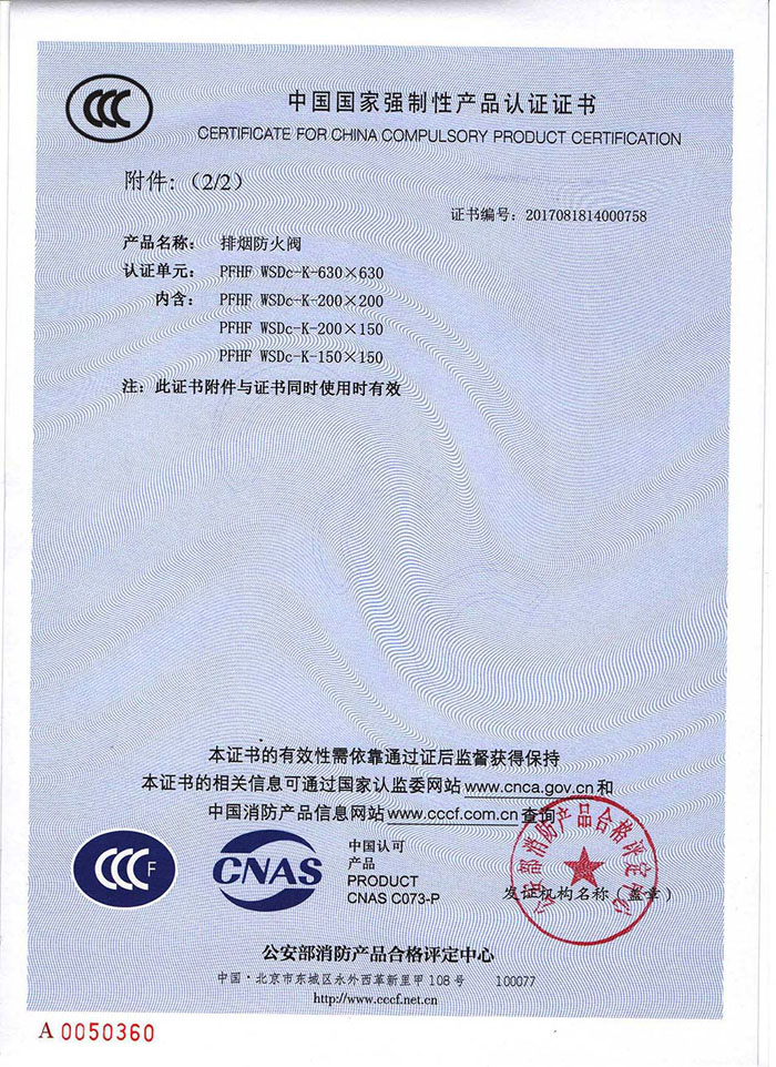 3C证书 排烟防火阀